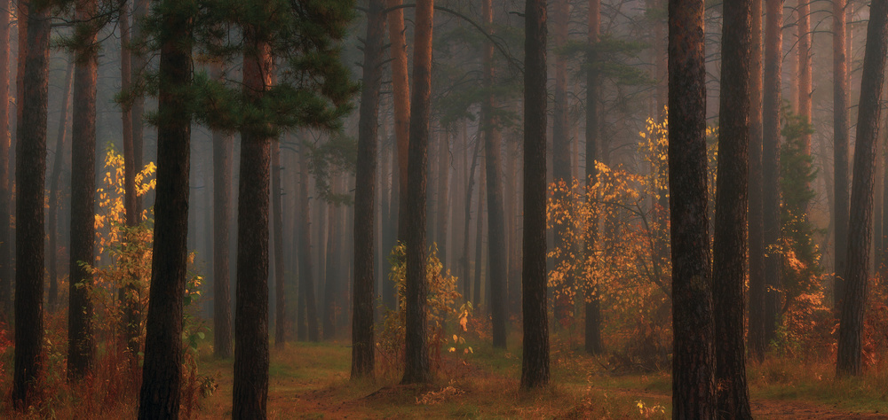 This is a very touching image, presenting a warm and welcome atmosphere of the forest scenery. The light shedding from left side provides perfect multiple layers through out the entire field and illustrates a gradual transition from warm to cool colors. The photographer also revealed an interesting orderly nature from these tree trunks and branches patterns.