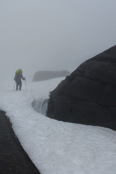 Yan was traversing along the glacier ridge.