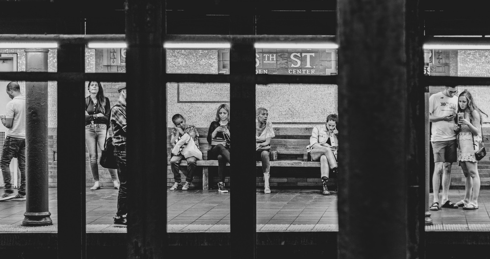 You asked also about the black and white conversion and proportions. I think the long, narrow format fits the subway scene, and the black and white tones are looking good. The contrast is strong, but I think that harsh look suits the big city theme. This is reality.