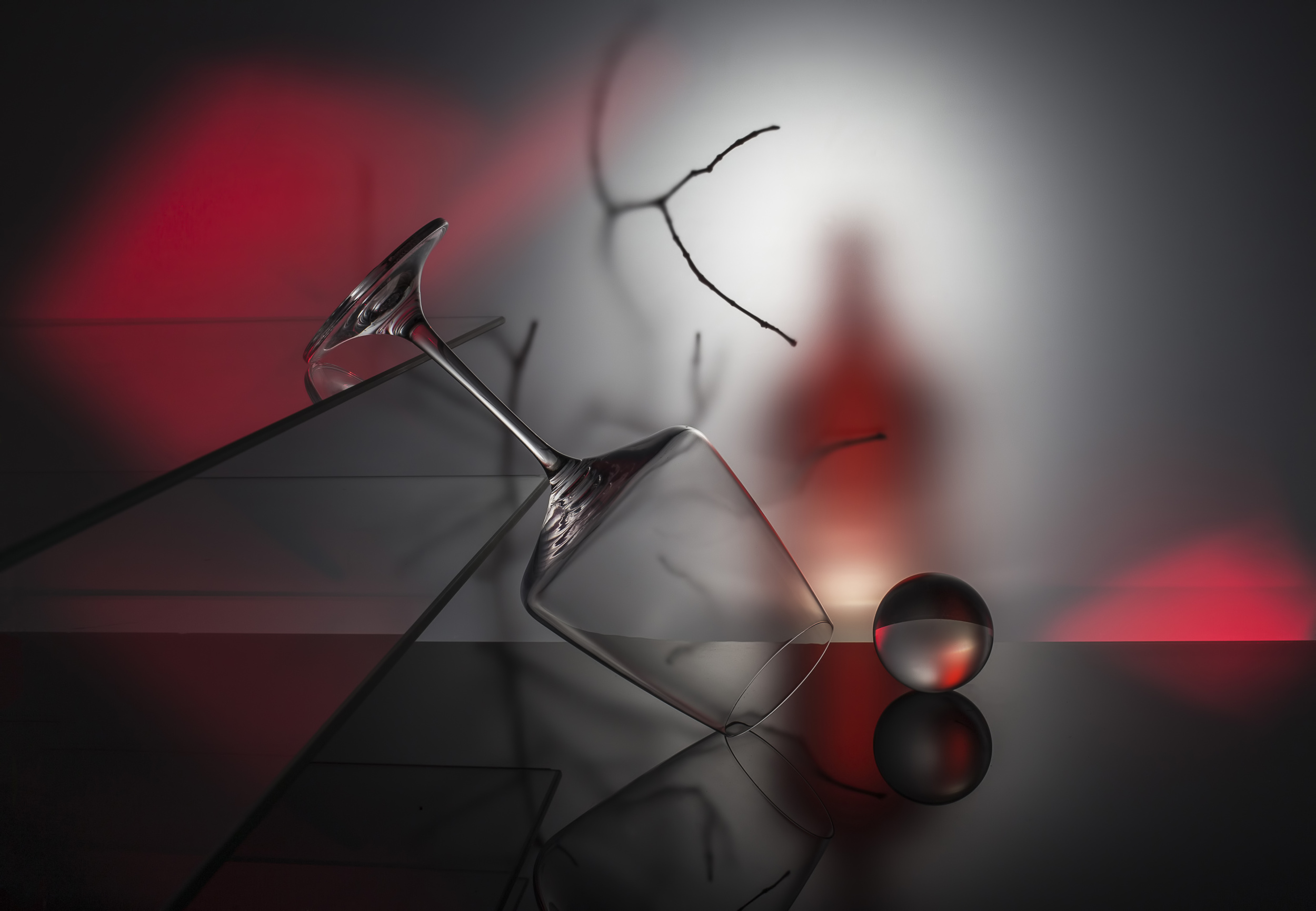 Along with technical perfection, I was constantly improving my own style. It was not interesting for me to shoot, like everyone else, jugs and vases with flowers, I wanted to do something unusual. So I have two main directions: compositions made up of glass objects, and compositions of solid opaque objects with complex lighting. I do not seek to have some deep hidden meaning embedded in the composition, it is enough for me to harmoniously arrange my "models" and beautifully illuminate them. I carefully select objects for my works, usually 10-15 variants of the same composition with different objects are obtained, until in the end there is one, the only true, most aesthetic option. So I can say without any doubt, that to me, the technical perfection, the composition and the aesthetics are the most important. However, sometimes I have jobs in which I try to put some feelings.