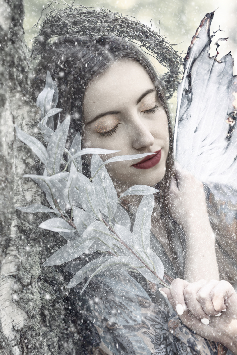 My portraiture work began to take many forms other than just ordinary portraits started which bored me a bit. It started with little steps becoming bolder and bolder. Simply by looking at a face in a portrait, a different image of a given character was already sprouting in my imagination. I like to use various elements to achieve that goal. My favourite elements are plant ornaments, trees, flowers and branches.