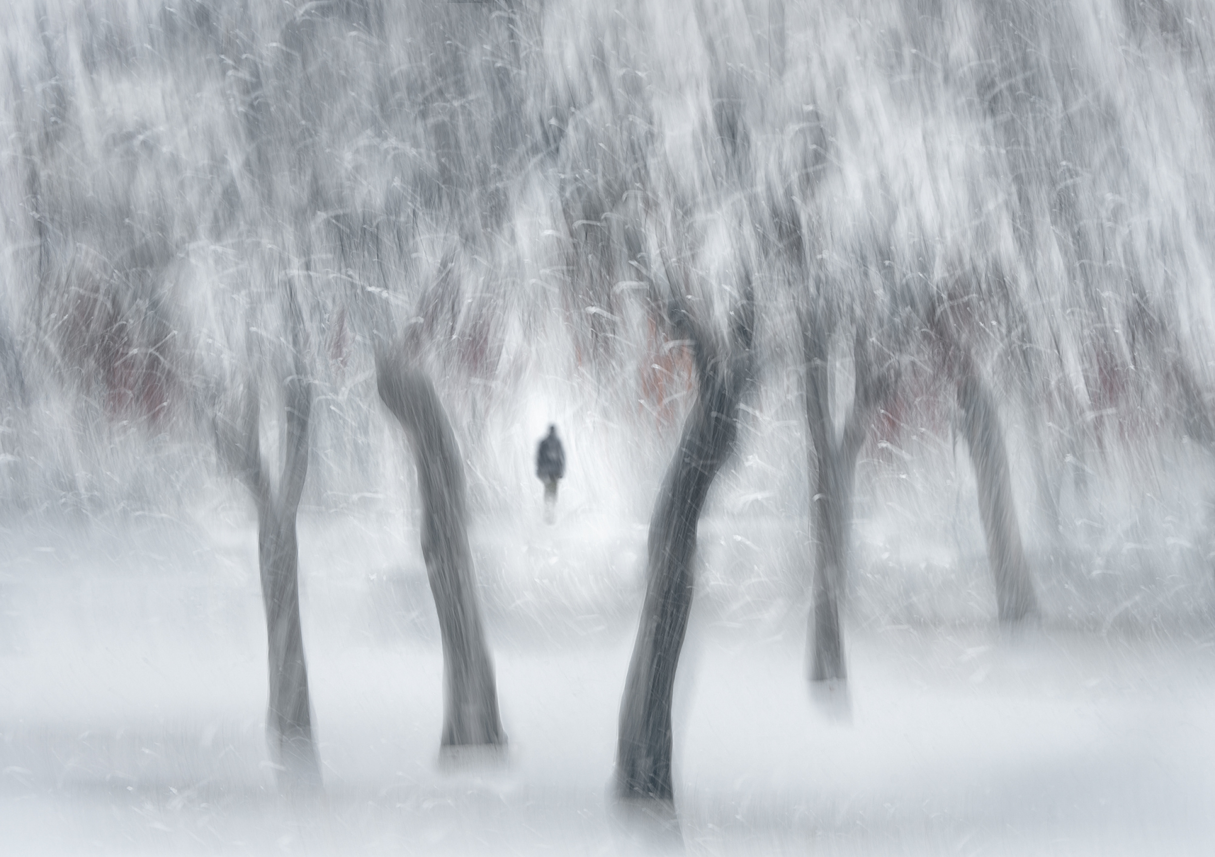 I’ve always wanted to shoot in heavy snow and it never snows where I live, so I made good use of this extra day of delay. I dropped my family to a hotel again and headed out to bury myself in this stormy white world, carrying my camera. I have never seen snowflakes this big, flying around me.