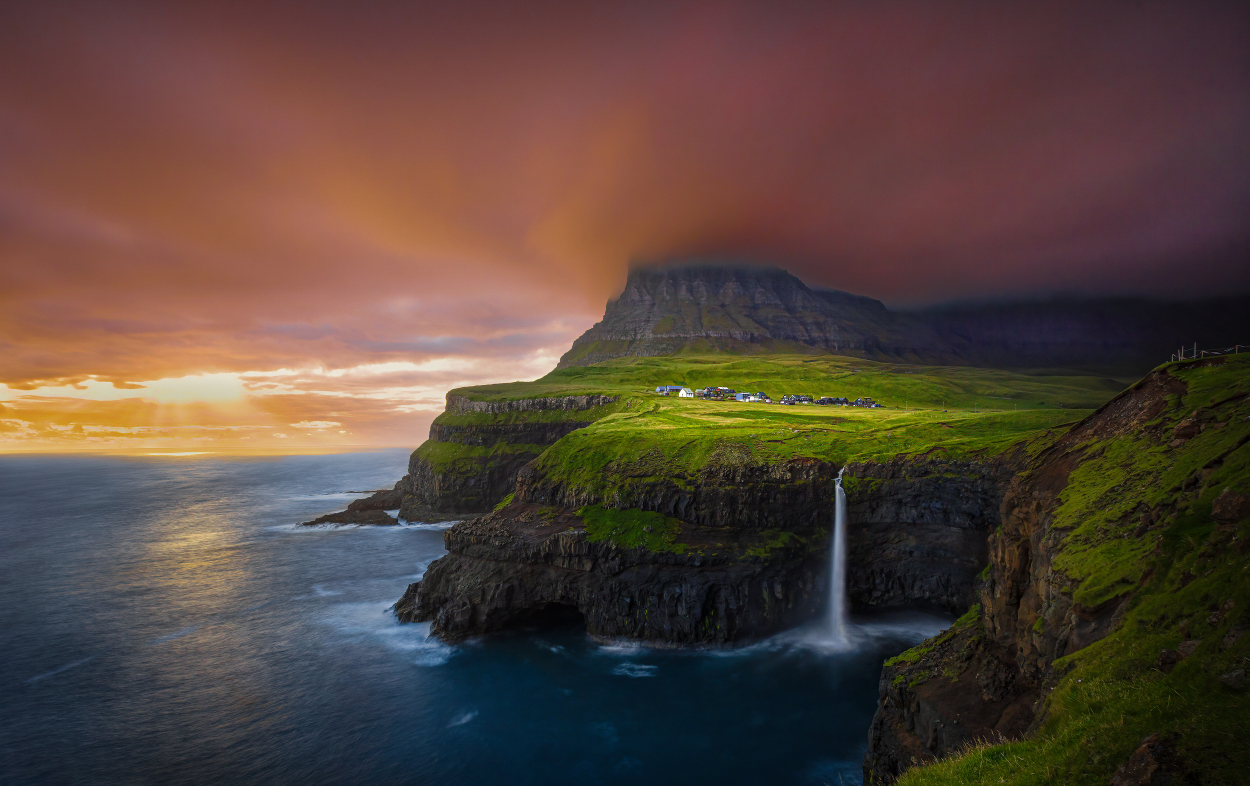 On our way to Vagar Island, clouds matted the skies and began to drizzle. By the time we arrived at the falls, there were only a handful of people there – we guessed that most left because of the rain. We felt disappointed and were afraid that we would not get the best photos, still decided to wait anyway. A half-hour later, a miracle happened! The rain abruptly stopped and gave way to a beautiful sunset. It was one of the best views we have ever witnessed along our photographic journey. I am glad we decided to stay at the falls – patience really paid off that day.