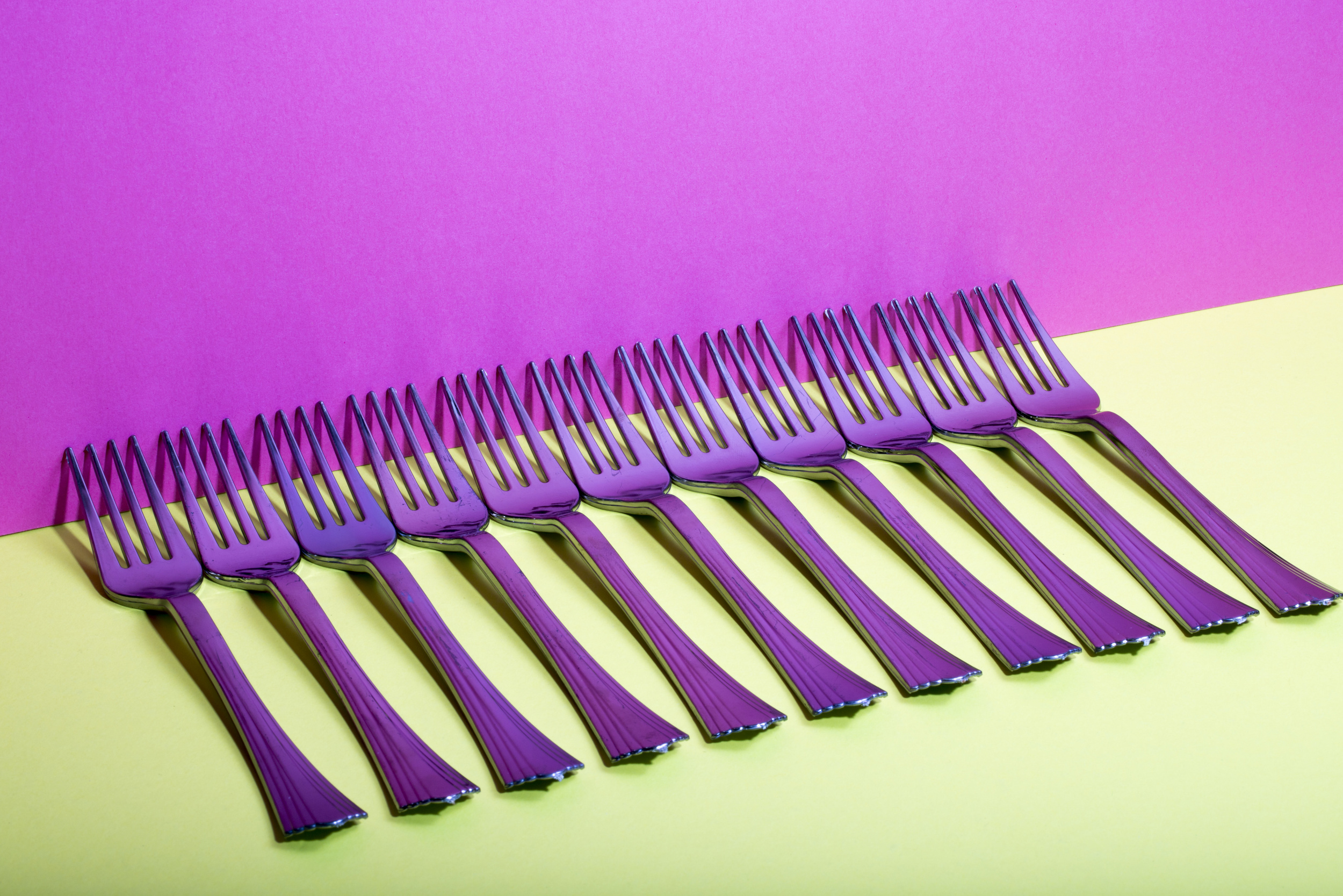 'Abstract still-life with forks on a colourful background'